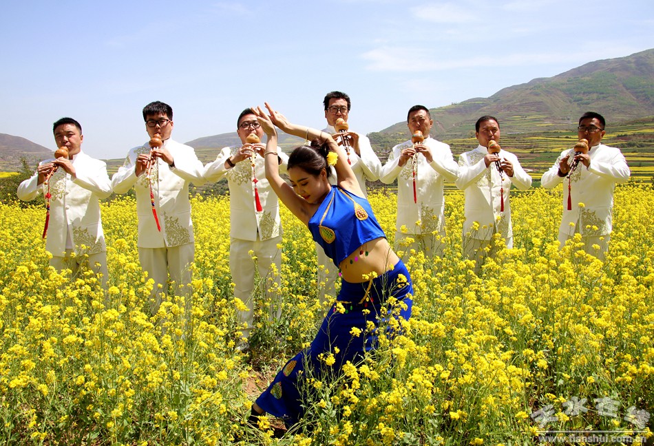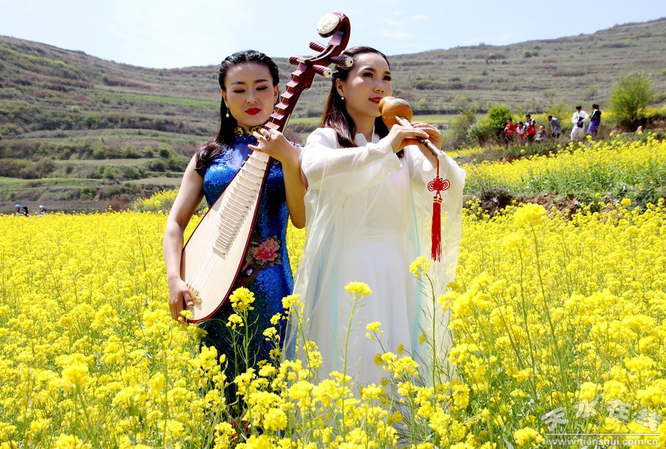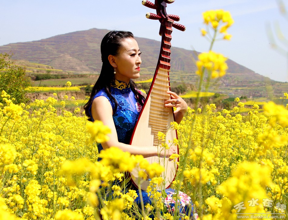 (琵琶表演 天水在線5月2日攝于龍臺鎮(zhèn)大莊村油菜花田)