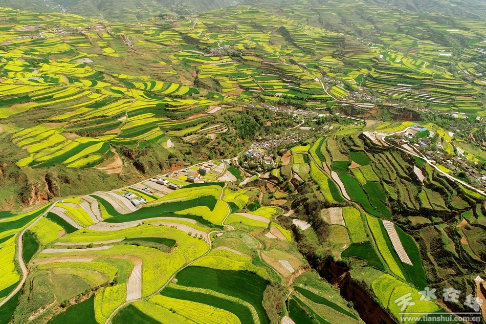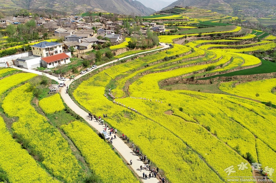 五月的武山,油菜花開滿山岡,美不勝收。5月2日,天水在線無人機(jī)航拍小組走進(jìn)大美武山油菜花田核心區(qū)龍臺鎮(zhèn)大莊村、馬年村和灘歌鎮(zhèn)漆莊等村攝影采風(fēng),同時拍攝合唱快閃《在希望的田野上》。