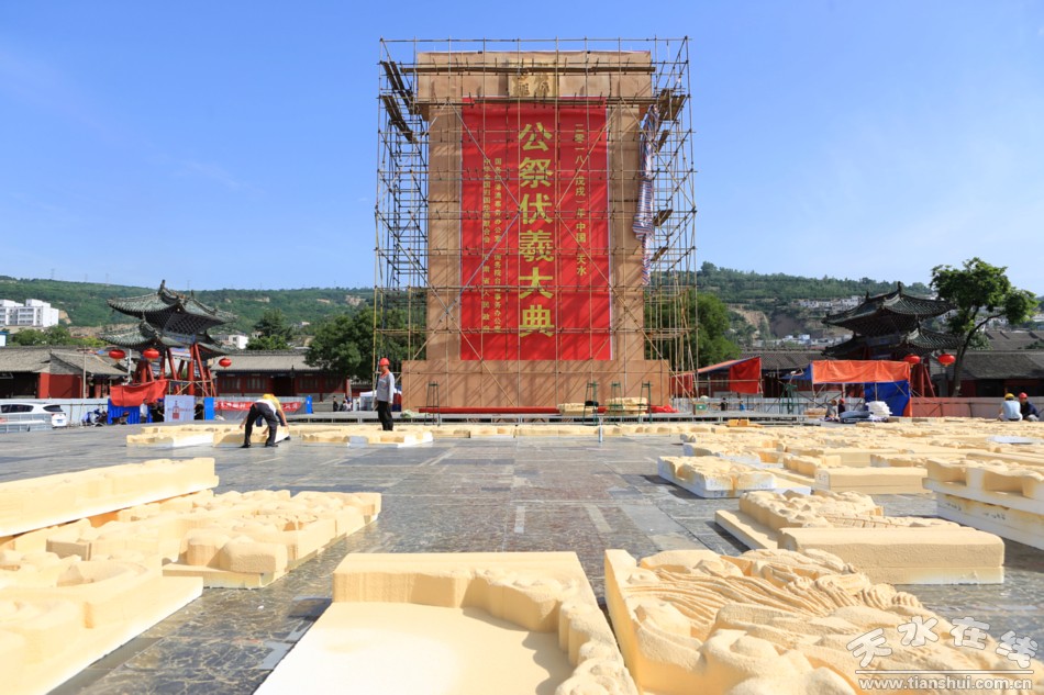 (在伏羲廣場檢查祭祀豐碑搭建情況)