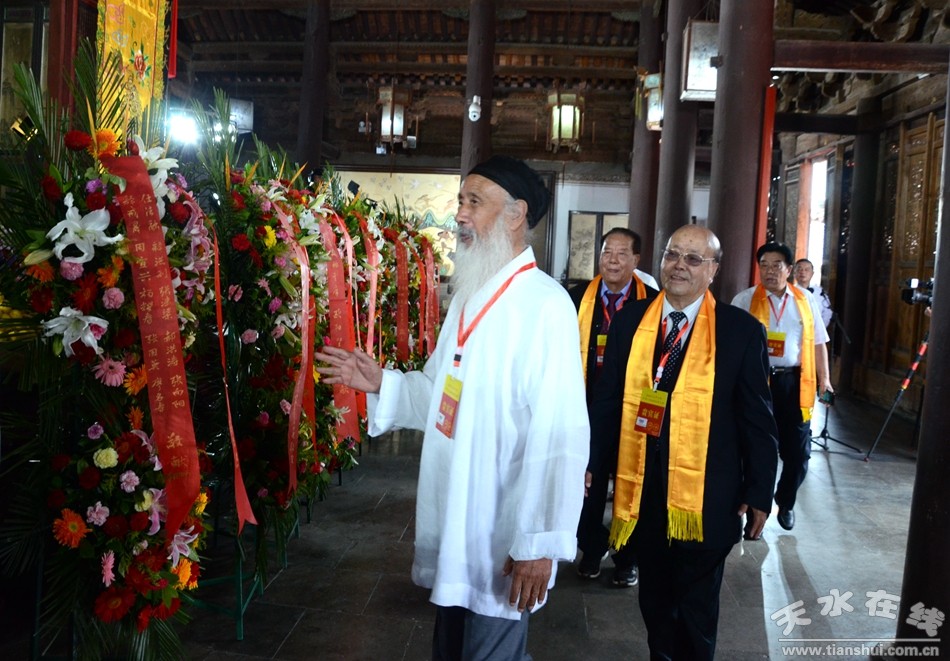 。ㄈ珖(guó)政協(xié)常委、中國(guó)道教協(xié)會(huì)原會(huì)長(zhǎng)任法融,澳門(mén)佛教(國(guó)際)聯(lián)合會(huì)會(huì)長(zhǎng)釋戒晟,法門(mén)寺堂主釋洪利,十三屆全國(guó)政協(xié)常委、甘肅省政協(xié)原副主席、原伏羲文化研究會(huì)執(zhí)行會(huì)長(zhǎng)周宜興,甘肅省政協(xié)原黨組副書(shū)記、副主席、原中華伏羲文化研究會(huì)會(huì)長(zhǎng)張津梁,甘肅省軍區(qū)原副政委少將楊耀春,甘肅省伏羲文化研究會(huì)副理事長(zhǎng)郝洪濤,廣東省深圳市政協(xié)原副秘書(shū)長(zhǎng)張國(guó)英,原中華伏羲文化研究會(huì)副會(huì)長(zhǎng)張向陽(yáng),清華大學(xué)歷史系教授、博士生導(dǎo)師廖名春敬獻(xiàn)花籃。)