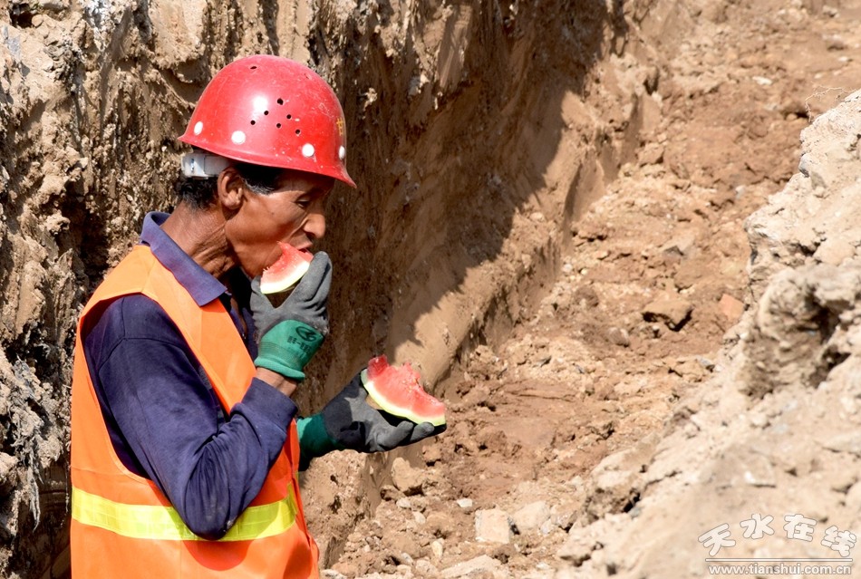 進(jìn)入三伏天的天水,烈日炎炎,暑熱難耐。但是,有那么一群人,為了讓這個(gè)城市盡快變的更加美好,仍然揮漢如雨,頂烈日冒酷暑,加班加點(diǎn)奮戰(zhàn)在平凡的崗位上。為了感謝他們的堅(jiān)守和付出,表達(dá)社會(huì)各界對(duì)城市重點(diǎn)項(xiàng)目的關(guān)注和希望盡快建成的渴望,7月30日下午,天水在線攜手建設(shè)銀行天水分行為我市重大項(xiàng)目的建設(shè)者送上西瓜、飲料,在這酷熱的天氣里,傳遞一份“溫暖”的涼意。