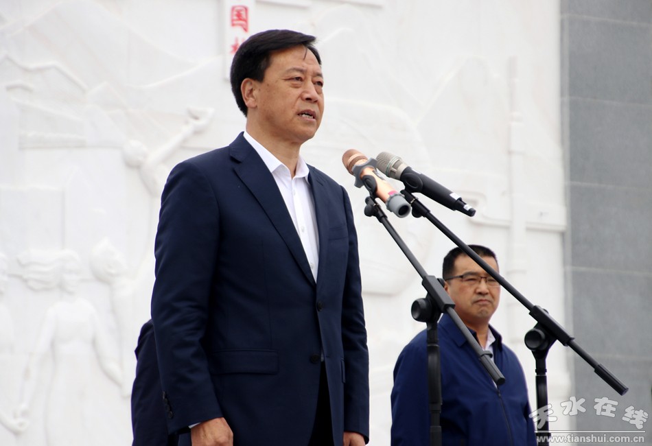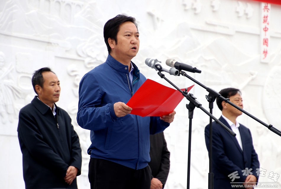 。ㄎ渖娇h委副書記、縣長(zhǎng)馬勤學(xué)宣布武山人民廣場(chǎng)正式開(kāi)放。)
