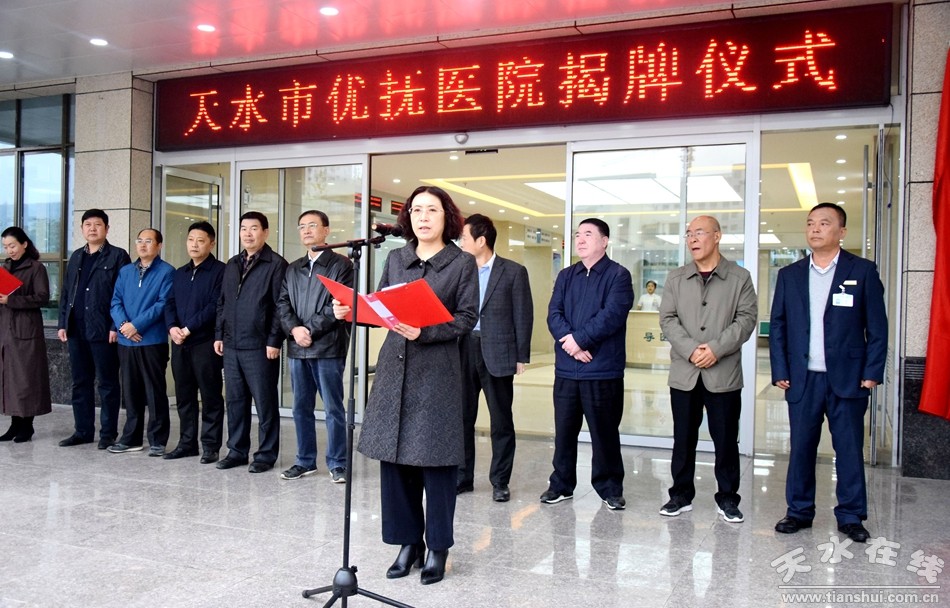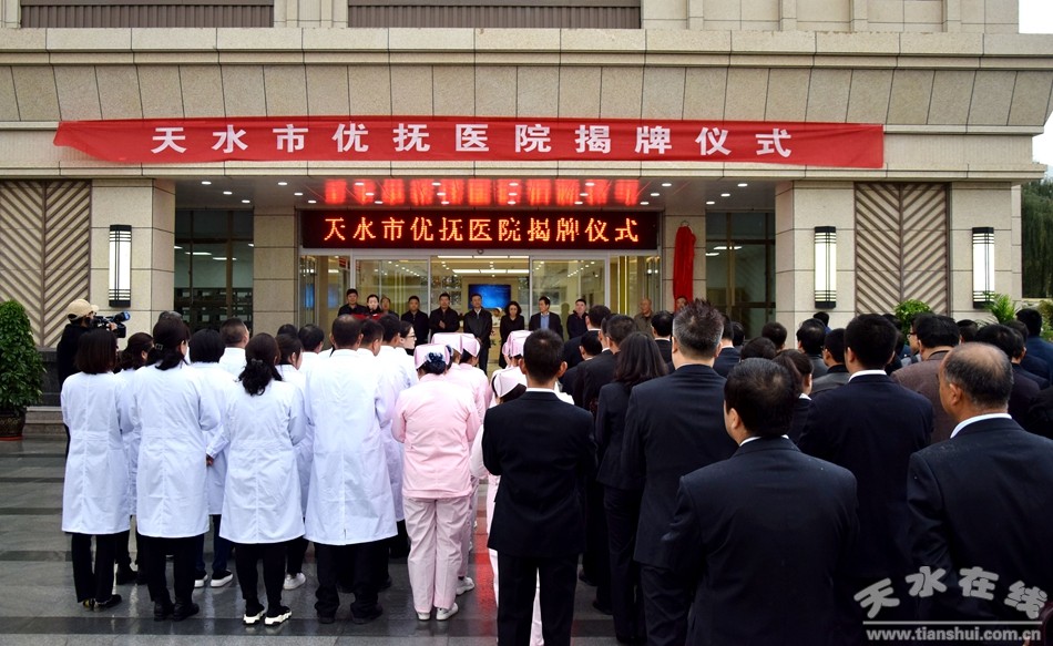 10月13日上午,天水市優(yōu)撫醫(yī)院建成揭牌儀式在市復退軍人精神病療養(yǎng)院舉行。副市長王燕出席揭牌儀式并致辭,市政府副秘書長焦新德、市民政局相關負責同志參加揭牌儀式。