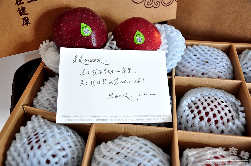 11月21日,天水在線收到了一件SOHO中國董事長潘石屹從北京寄來的禮品,一箱潘蘋果,一封信件。SOHO中國推廣部推廣主管告訴小編,這份禮品是潘總感謝天水在線一直以來給予SOHO中國和他本人宣傳報(bào)道的一點(diǎn)心意;希望以后雙方加強(qiáng)合作,共同把潘總致力于家鄉(xiāng)的公益事業(yè)宣傳好報(bào)道好。