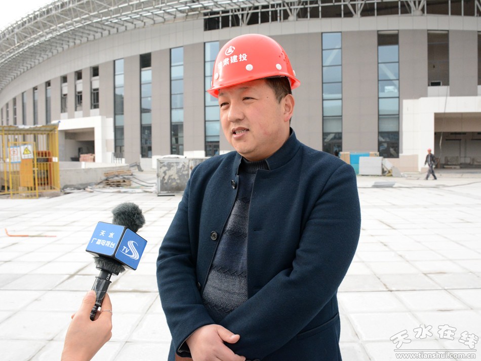 (天水市體育中心項目建設方甘肅建投天水建設公司工程部副部長趙海燕接受記者采訪)