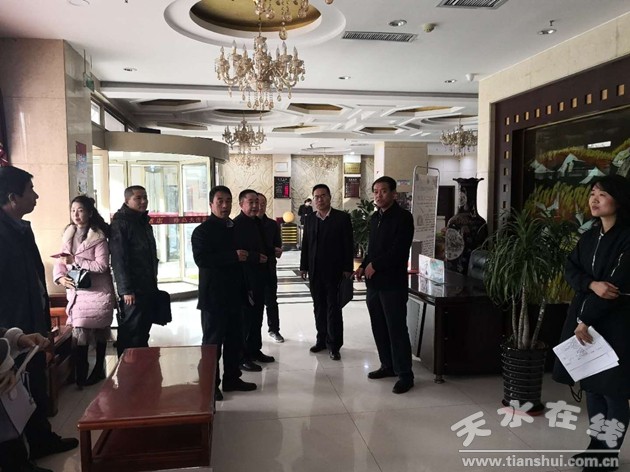 李尚平一行對照《天水市商貿(mào)流通行業(yè)創(chuàng)建全國文明城市工作實施方案》,從酒店、商場外立面到內(nèi)部,對宣傳欄設置、垃圾分類及責任分工、制度建立等軟硬件設施進行了詳細的檢查。