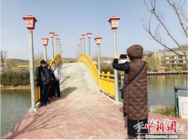 (圖為游人在青鵑湖拱橋上拍照留念!¢Z姣 攝)