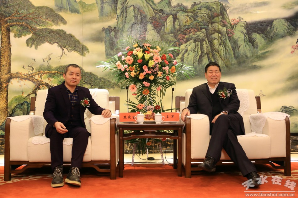 (簽約儀式前,王軍等會(huì)見(jiàn)了熊晚生一行。)