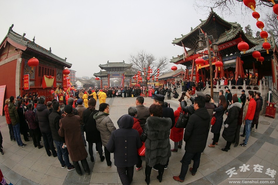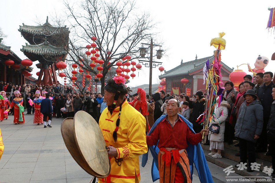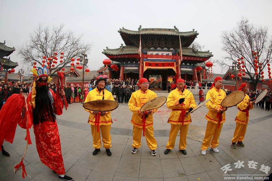 2月19日,農(nóng)歷正月十五,天水伏羲廟戲樓前青煙繚繞,古樂悠悠。伴隨著羊皮鼓的“咚咚”聲,己亥(2019)年天水伏羲廟春祭伏羲活動”之開山攢神儀式在這里舉行。祭司身著傳統(tǒng)服飾,用古老傳統(tǒng)的舞步,為廣大人民群眾展示了這一具有原始風味的祭祀儀式。