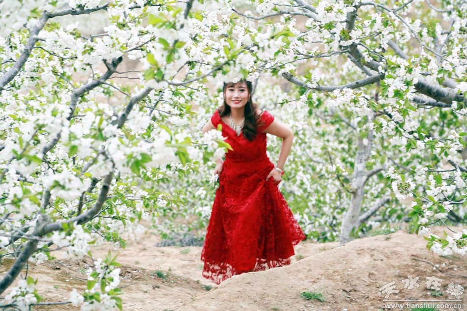 (甘肅天水,煙鋪櫻桃花海。)