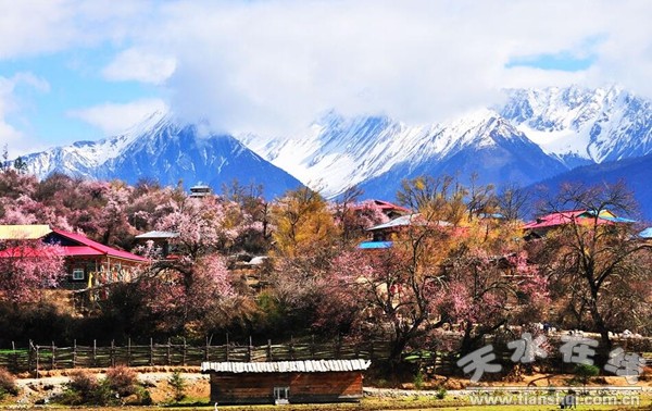 林芝的桃花樹高花繁,開得狂野,遠處雪峰聳立,近處桃花姹紫嫣紅。云霧裊裊,身處期間,恰似神仙幻境,一年四季盡收眼底。