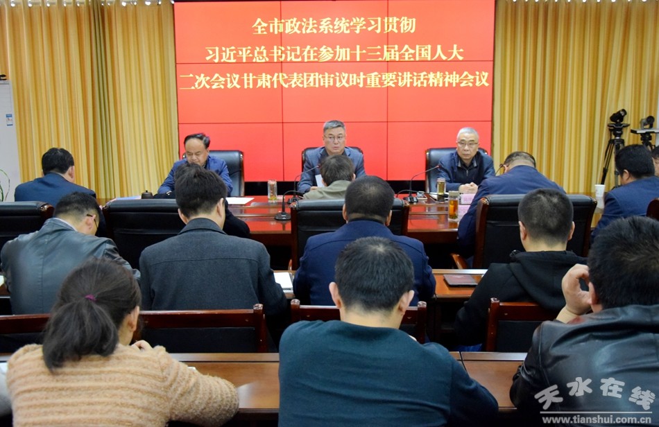3月19日下午,市委常委、政法委書記蒲軍主持召開全市政法系統(tǒng)學(xué)習(xí)貫徹習(xí)近平總書記參加十三屆人大二次會(huì)議甘肅代表團(tuán)審議時(shí)重要講話精神會(huì)議,傳達(dá)學(xué)習(xí)習(xí)近平總書記重要講話精神和省委政法委委務(wù)會(huì)、市委理論學(xué)習(xí)中心組學(xué)習(xí)會(huì)精神,安排全市政法系統(tǒng)學(xué)習(xí)貫徹工作。