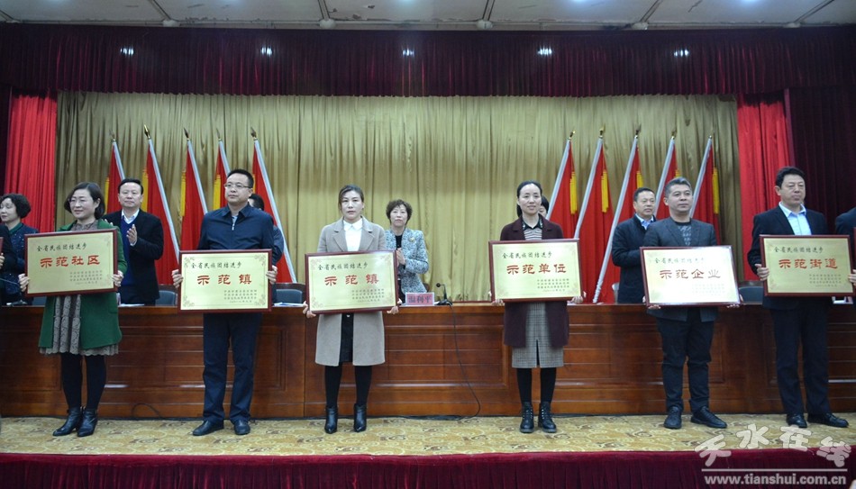 會(huì)上為全省民族團(tuán)結(jié)進(jìn)步創(chuàng)建示范縣、示范單位授牌;宣讀了2018年度目標(biāo)管理責(zé)任書考核優(yōu)秀單位;相關(guān)單位作了交流發(fā)言。