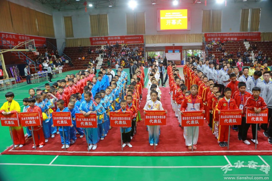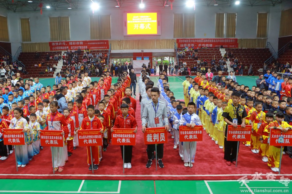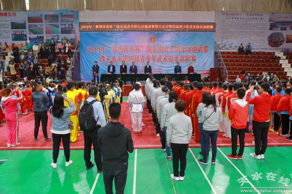 4月20日,2019“賽博體育杯”隴東南武術(shù)俱樂部邀請賽暨天水市第四屆青少年武術(shù)俱樂部聯(lián)賽開幕式在南山體育館舉行。