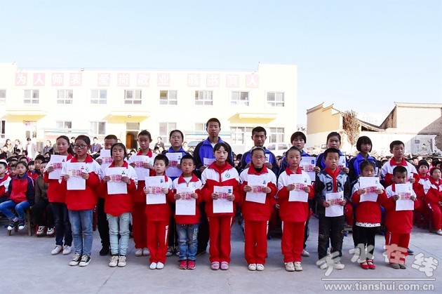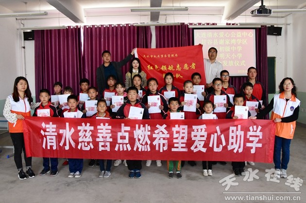 大連清水慈善總會(huì)是遼寧省的民間公益機(jī)構(gòu),2014年成立以來(lái)累計(jì)幫助近8000戶貧困家庭,助學(xué)1000多名貧困學(xué)子,長(zhǎng)期資助405名貧困學(xué)子,扶貧范圍從2014年的遼寧省部分地區(qū),逐漸延伸至黑龍江、內(nèi)蒙古、河北、甘肅、貴州、四川等地,受到當(dāng)?shù)卣腿罕姷馁澰S和好評(píng)。天水市機(jī)關(guān)事務(wù)管理局一直教育引導(dǎo)干部職工要樹立奉獻(xiàn)意識(shí)和責(zé)任意識(shí),關(guān)愛社會(huì)弱勢(shì)群體 ,積極參與公益活動(dòng),傳遞社會(huì)正能量,并成立“紅色領(lǐng)航志愿者服務(wù)隊(duì)”。此次愛心助學(xué)活動(dòng)是繼2017年9月與蘭州小草微公益,大連清水慈善總會(huì)聯(lián)合,在甘肅省甘谷縣、會(huì)寧縣首次資助貧困學(xué)子111名,每名發(fā)放助學(xué)金500元之后,開展的又一次大型的愛心捐助活動(dòng),不僅溫暖了孩子們的心靈,更在他們的心里種下了希望的種子,希望孩子們能憑借自己的努力讓希望的種子生根發(fā)芽。