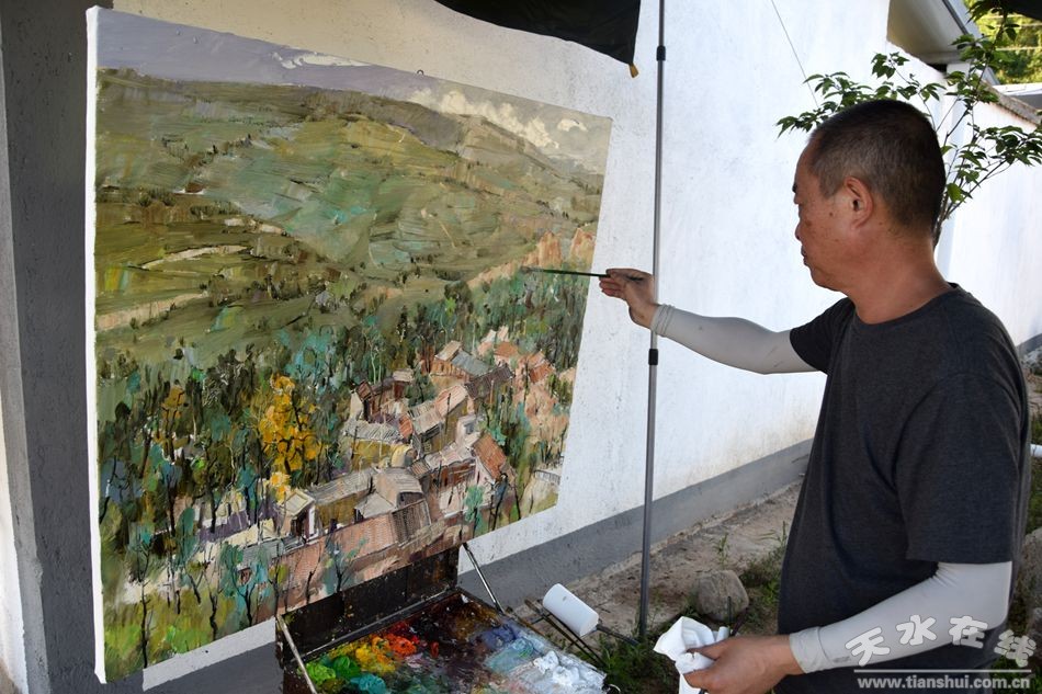 天水在線7月23日報道 清水縣郭川鎮(zhèn)梅峪村是一個自然村,村不大,但遠山、農舍、村落、老樹卻構成了一幅幅頗有韻味的北方農村風俗畫,這里的一磚一瓦,一草一木,在畫家的眼中,儼然都是一幅幅難得的“風景”。