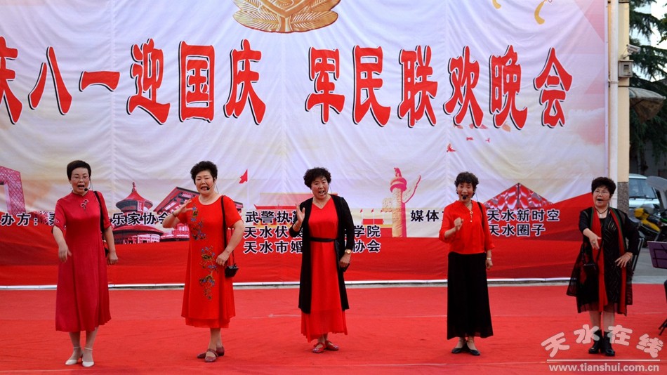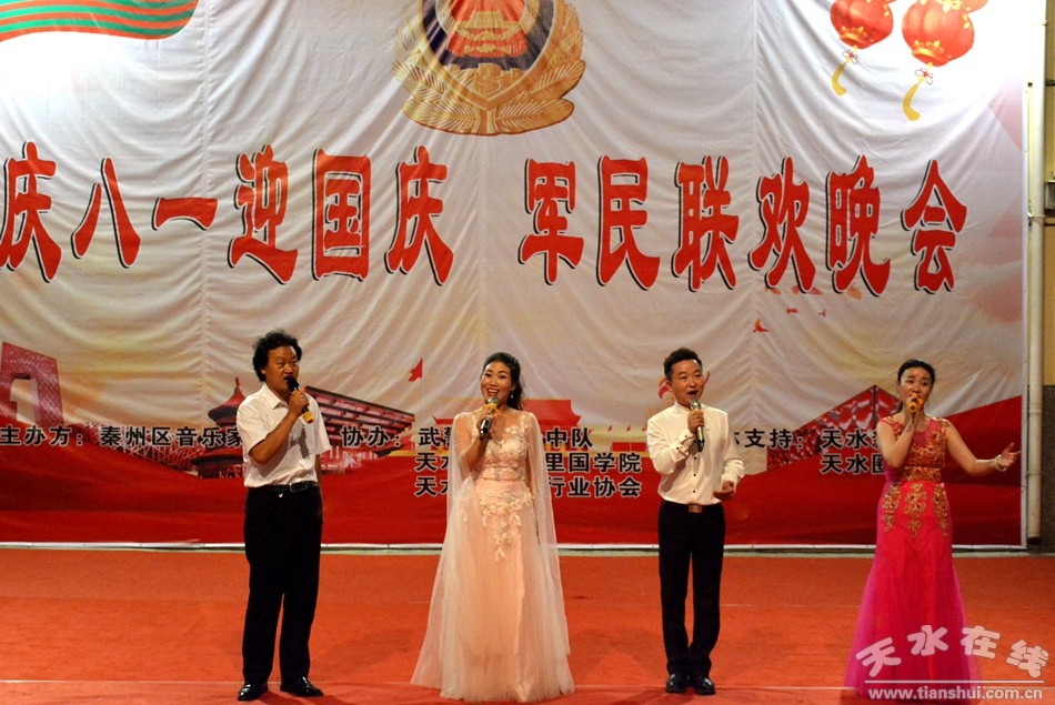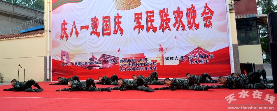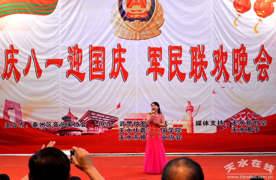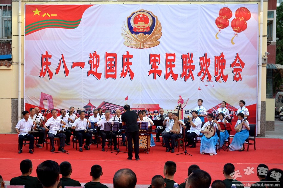 在中國人民解放軍建軍92周年的喜慶日子里,在新中國70周年華誕即將到來之際,7月30日晚,由天水市秦州區(qū)音樂家協(xié)會(huì)主辦,武警天水支隊(duì)執(zhí)勤一中隊(duì)、伏羲故里國學(xué)院、天水市婚慶行業(yè)協(xié)會(huì)協(xié)辦的“慶八一 、迎國慶” 軍民聯(lián)歡晚會(huì)在武警天水支隊(duì)執(zhí)勤一中隊(duì)舉行。