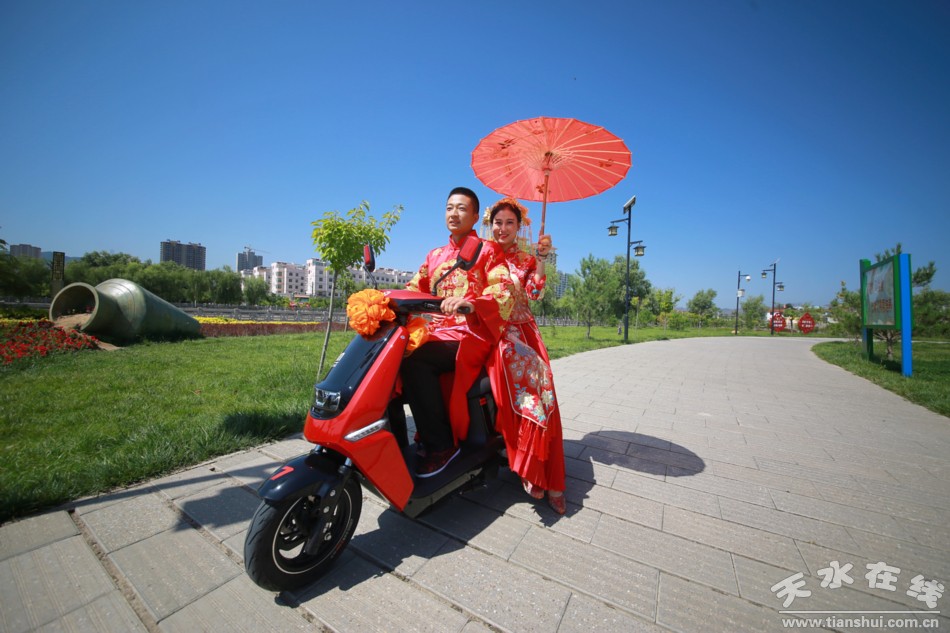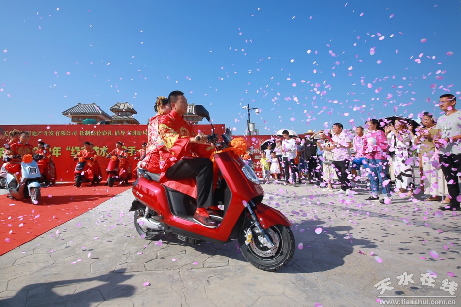 上午9:00,14對(duì)新人騎行電動(dòng)車,從軒轅湖公向東,經(jīng)軒轅大道繞行東部新城區(qū)至軒轅湖公園,見證甜蜜愛情,共同倡導(dǎo)婚俗文明新風(fēng)尚。