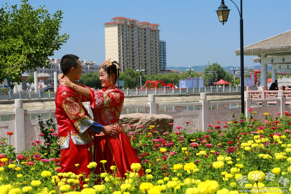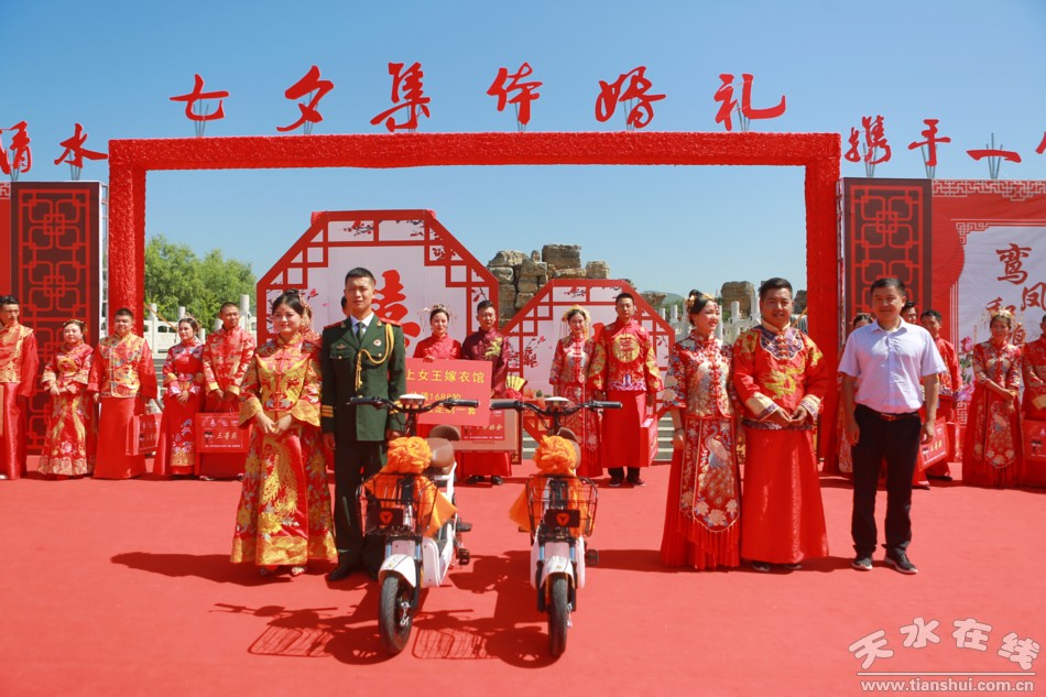 牽?椗蜗嗤,鵲橋翩翩筑佳期。8月7日是我國的傳統(tǒng)節(jié)日七夕,清水縣在軒轅湖公園舉辦第二屆“緣定清水·攜手一生”七夕集體婚禮活動(dòng),14對(duì)新人身穿中式傳統(tǒng)婚服,在人們的祝福中喜結(jié)連理。