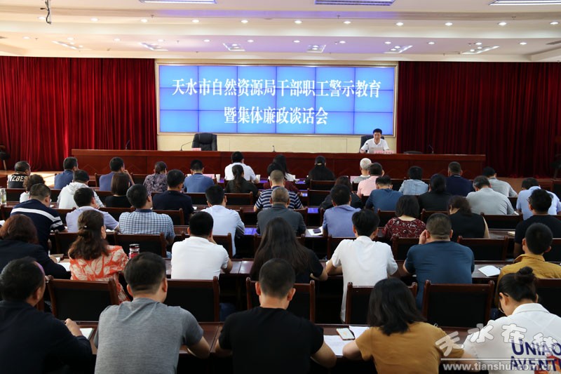8月9日,天水市自然資源局召開干部職工警示教育暨集體廉政談話會。會議邀請市紀(jì)委監(jiān)委第一紀(jì)檢監(jiān)察室主任李順發(fā)做了黨風(fēng)廉政警示教育報告,市紀(jì)委監(jiān)委派駐市自然資源局紀(jì)檢組長、市自然資源局黨組成員曹滿才對新任科級干部進(jìn)行了集體任前廉政談話。局在家領(lǐng)導(dǎo),副縣級干部,局機(jī)關(guān)、局屬事業(yè)單位全體干部職工120余人參加了會議。