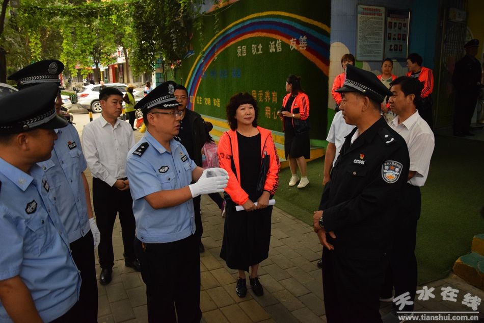 馬瑛一行先后來到田家炳中學(xué)、逸夫中學(xué)、天水市實驗小學(xué)、新華門小學(xué)、解一小學(xué)、解放路幼兒園、東團莊幼兒園等中小學(xué)和幼兒園,實地察看了上下學(xué)期間校園周邊“高峰勤務(wù)”、“護學(xué)崗”警力落實、校園內(nèi)部安全防范以及校園周邊治安情況,并與保安員交談,詳細了解了學(xué)生安全出行、學(xué)校內(nèi)部保衛(wèi)、安全防范等制度落實情況。