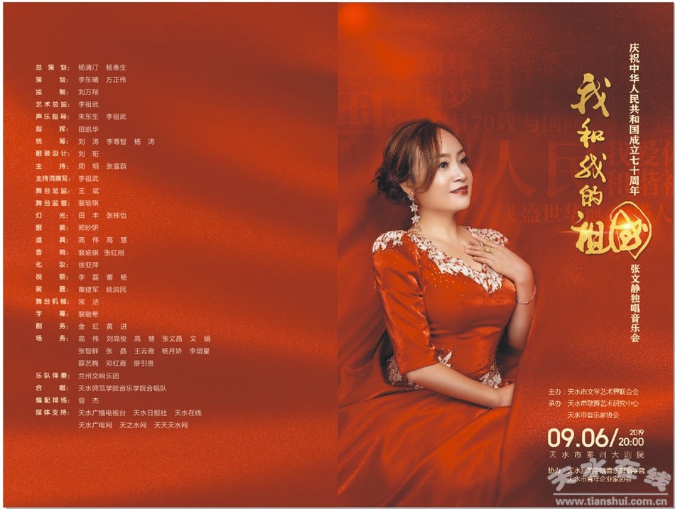 《我和我的祖國》張文靜獨(dú)唱音樂會(huì)將于9月6日晚在秦州劇院舉行