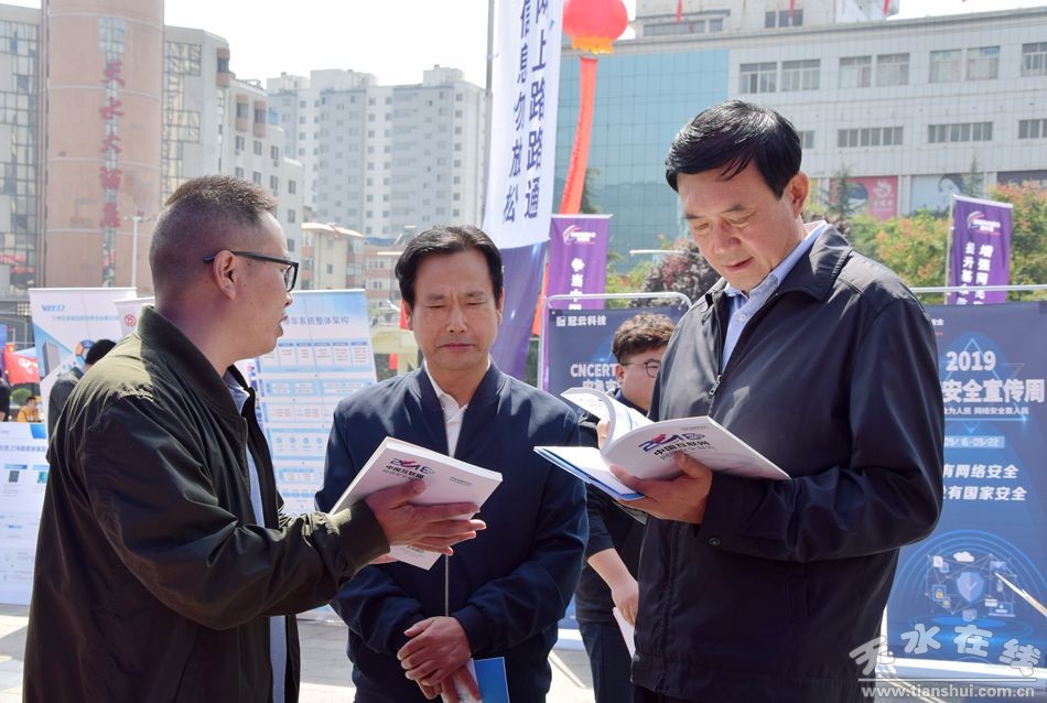 9月20日,2019年國(guó)家網(wǎng)絡(luò)安全宣傳周天水市集中宣傳展示活動(dòng)在龍城廣場(chǎng)舉行。市委副書(shū)記趙衛(wèi)東、市人大常委會(huì)副主任蒲朝暉、副市長(zhǎng)逯克宗現(xiàn)場(chǎng)察看了宣傳展示活動(dòng)。