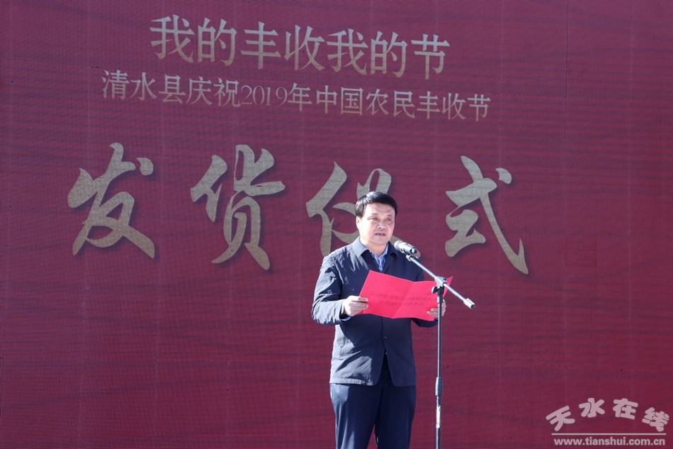 (清水縣人大常委會(huì)主任周偉東宣布天津市河北區(qū)消費(fèi)扶貧購(gòu)買清水農(nóng)特產(chǎn)品發(fā)貨儀式發(fā)車)