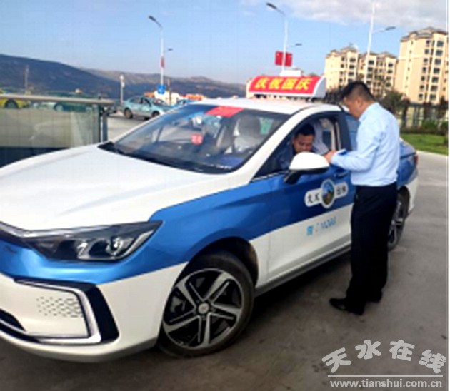 在國(guó)慶來臨之際,公司負(fù)責(zé)人劉剛親自帶隊(duì)上路稽查我公司出租車行車情況,進(jìn)行逐車查逐人核,主要對(duì)新能源純電動(dòng)出租車進(jìn)行排查,確保行車安全、車輛衛(wèi)生、駕駛員形象、文明用語“您好,謝謝,再見”的使用,著力打造行業(yè)服務(wù)標(biāo)桿,樹立天水出租車行業(yè)新形象新風(fēng)貌,純電動(dòng)出租車不僅車內(nèi)噪音小,而且沒有燃油異味,低碳環(huán)保,也為提升我市環(huán)境質(zhì)量做出了努力。