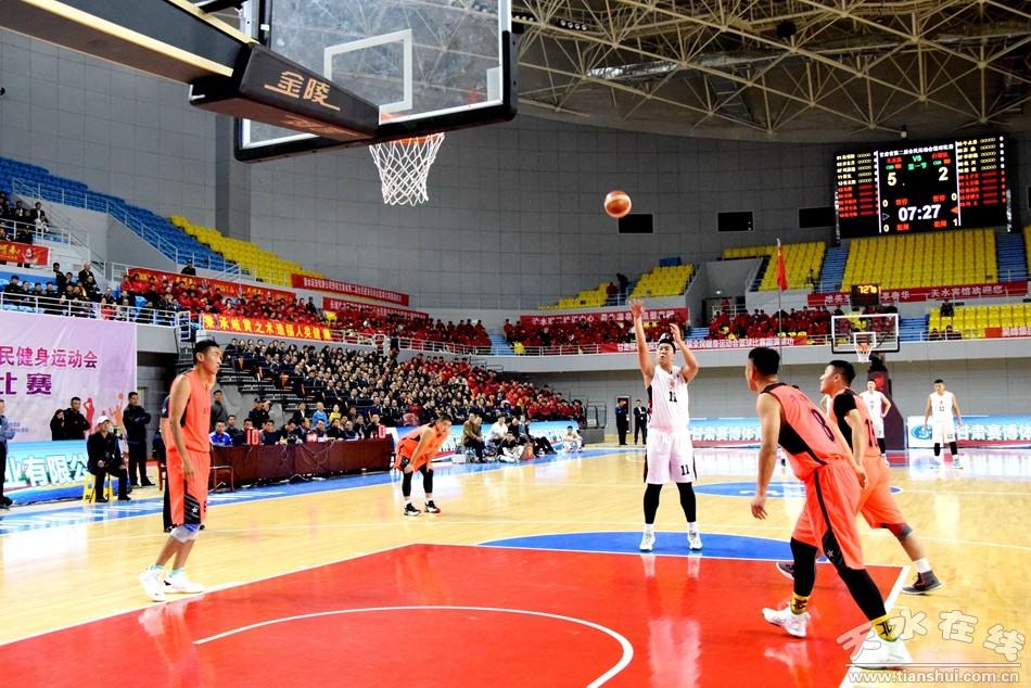 甘肅省第二屆全民健身運動會籃球比賽由甘肅省體育局、甘肅省體育總會主辦,甘肅省籃球運動協(xié)會、天水市體育局承辦。比賽為期5天,共有18支運動隊參加比賽。分成年男子、成年女子兩個組別,成年男子比賽有天水、蘭州等13個市州代表隊參賽,成年女子比賽有天水、張掖、定西、嘉峪關(guān)、隴南5個市州代表隊參賽。