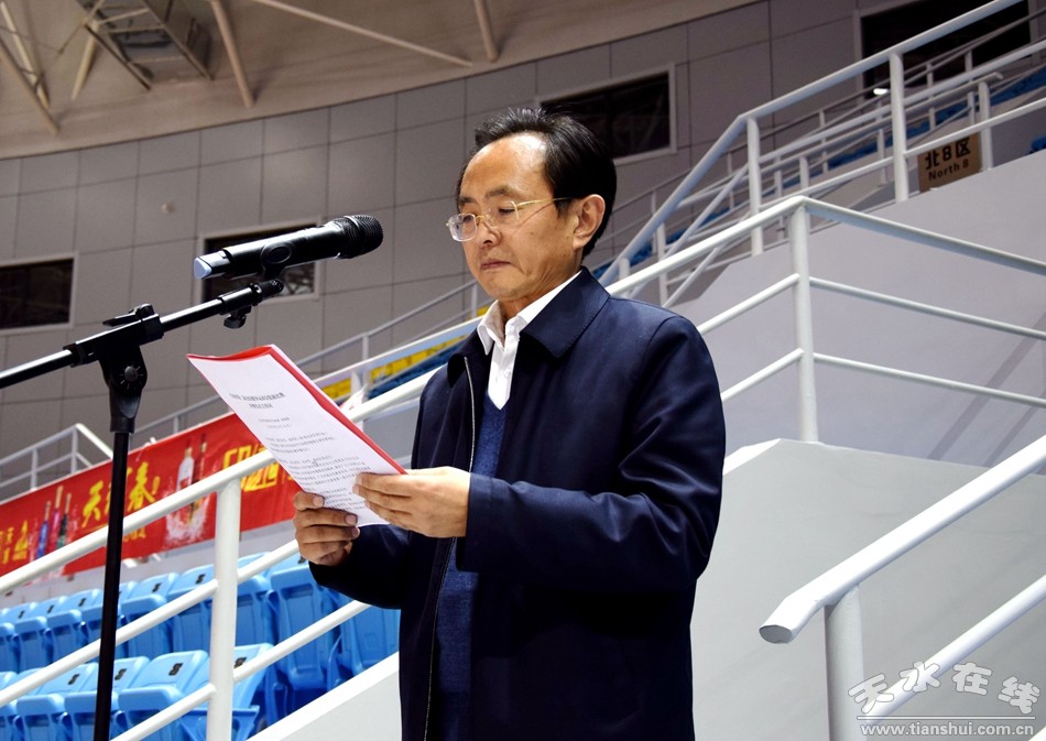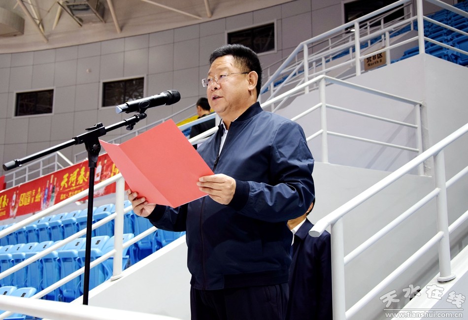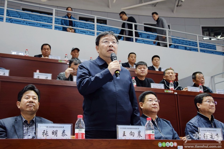 10月14日晚,甘肅省第二屆全民健身運動會籃球比賽在天水市體育中心拉開帷幕。省體育局黨組書記、局長王向晨宣布甘肅省第二屆全民健身運動會籃球比賽開幕。