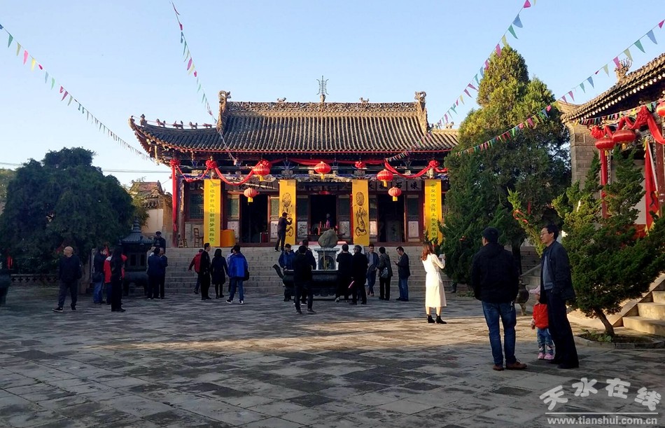 位于麥積區(qū)渭南鎮(zhèn)的卦臺(tái)山是采風(fēng)團(tuán)當(dāng)天的第一站。卦臺(tái)山如一條巨龍從群巒中探出頭來(lái),翠擁廟閣,渭水環(huán)流,鐘靈毓秀,氣象不凡。作家詩(shī)人們沿臺(tái)階向上,登臨卦臺(tái)山頂,俯瞰三陽(yáng)川。古老的渭河從西向東彎曲成一個(gè)“S”形,把橢圓形的三陽(yáng)川盆地一分為二,形成了一個(gè)天然的太極圖。采風(fēng)團(tuán)在卦臺(tái)山伏羲廟內(nèi)參觀祭拜,又一次紛紛感嘆天水的人杰地靈!暗堑缴巾敳虐l(fā)現(xiàn)大不同,卦臺(tái)山名不虛傳。”作家陳倉(cāng)精神十足,一邊稱贊,一邊讓朋友為他拍下與卦臺(tái)山的合影。