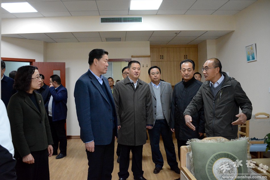 (實(shí)地察看天頤園康養(yǎng)居各個(gè)功能室、一期樣板間建設(shè)情況)