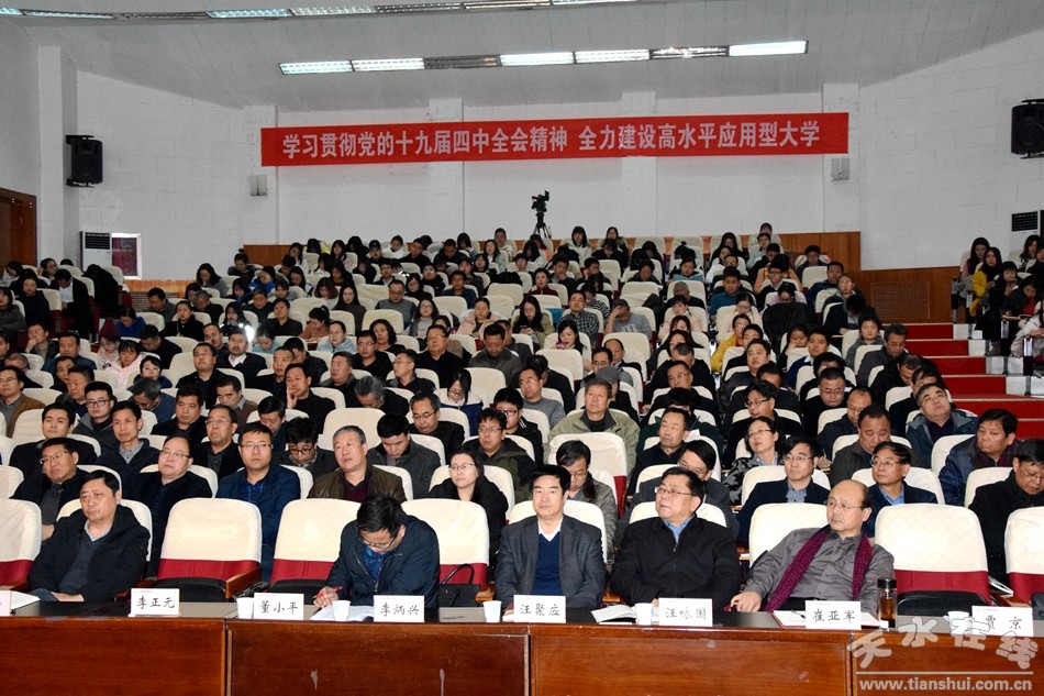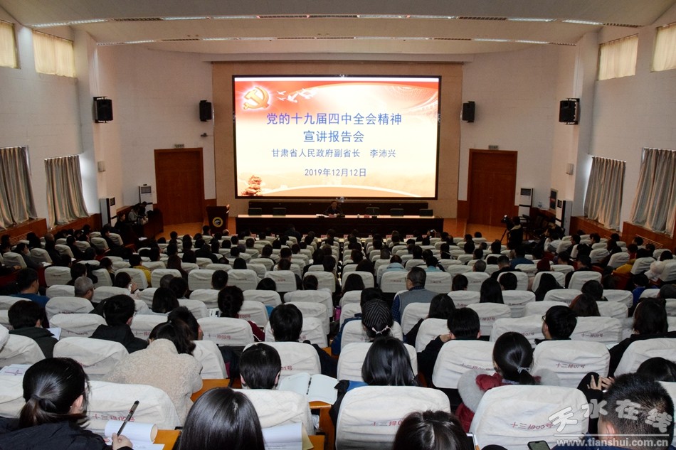 12月12日,副省長李沛興在天水師范學院宣講黨的十九屆四中全會精神。天水師范學院全體教師和學生代表共計300余人聆聽宣講報告。