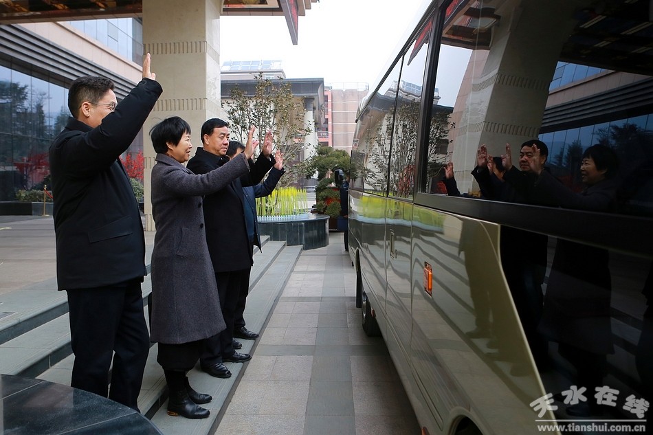 肩負著天水市人民的重托與期盼 , 1月8日中午,駐我市的省人大代表啟程,赴蘭州參加省十三屆人大三次會議。 市委副書記王國先、市人大常委會副主任王曉琴、副市長逯克宗為代表送行。