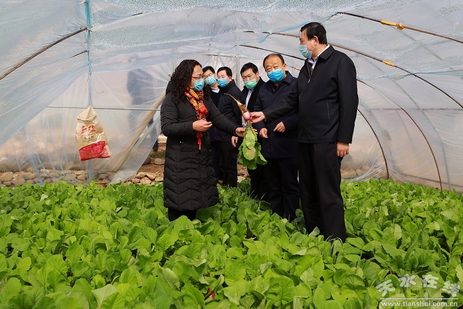 趙衛(wèi)東一路走一路看,走進武山縣大南河流域蔬菜標準化生產(chǎn)基地、四門西梁咀兒村全膜玉米示范點、西梁山地高效節(jié)水循環(huán)農(nóng)業(yè)示范區(qū)產(chǎn)業(yè)項目現(xiàn)場,甘谷縣磐安鎮(zhèn)五坪精細菜生產(chǎn)基地、甘谷縣早春地膜馬鈴薯基地、安遠鎮(zhèn)鞏川反季節(jié)櫻桃示范園果蔬大棚、田間地頭,詢問農(nóng)戶果蔬種植、銷售和春耕備耕情況,當?shù)弥窝滓咔閷κ卟朔N植、銷售、價格無影響,并能及時春耕備耕時,趙衛(wèi)東特別高興,他要求各級各相關部門要全面落實惠農(nóng)政策,加強農(nóng)技培訓,強化田間管理指導,引導農(nóng)民搶抓農(nóng)時,積極開展春耕備耕生產(chǎn),為今年農(nóng)業(yè)豐收打好基礎。