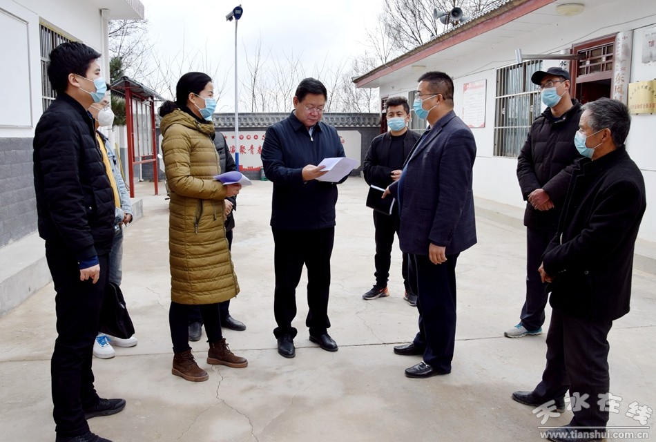 2月26日,天水市委常委、宣傳部部長張建杰到脫貧攻堅掛牌督戰(zhàn)村秦州區(qū)天水鎮(zhèn)東風村調(diào)研督導脫貧攻堅工作。他強調(diào),要深入學習貫徹習近平總書記關于疫情防控的重要指示和關于脫貧攻堅重要論述,采取有力有效措施,統(tǒng)籌做好疫情防控、春耕生產(chǎn)、脫貧攻堅等工作。