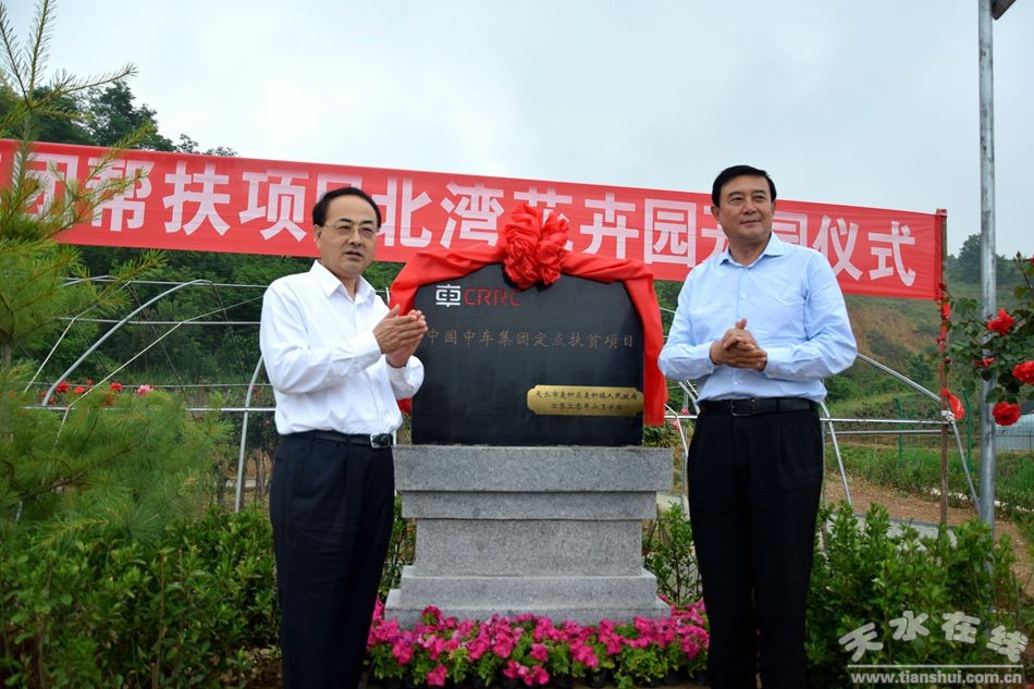 (為中車集團(tuán)幫扶項(xiàng)目-麥積鎮(zhèn)北灣村富灣種植農(nóng)民專業(yè)合作社花卉種植園剪彩、揭碑。)
