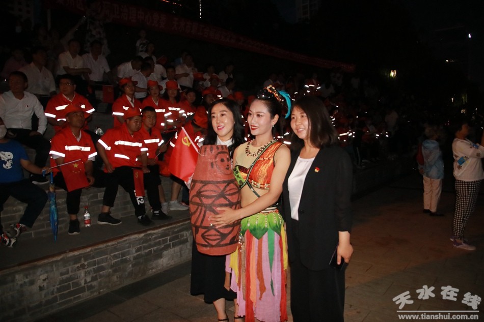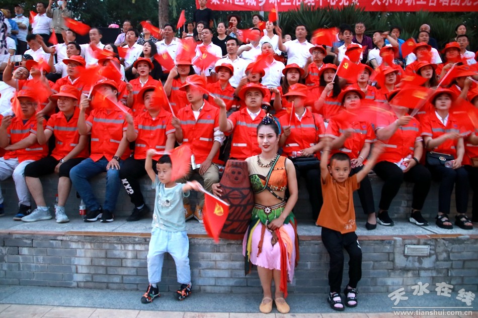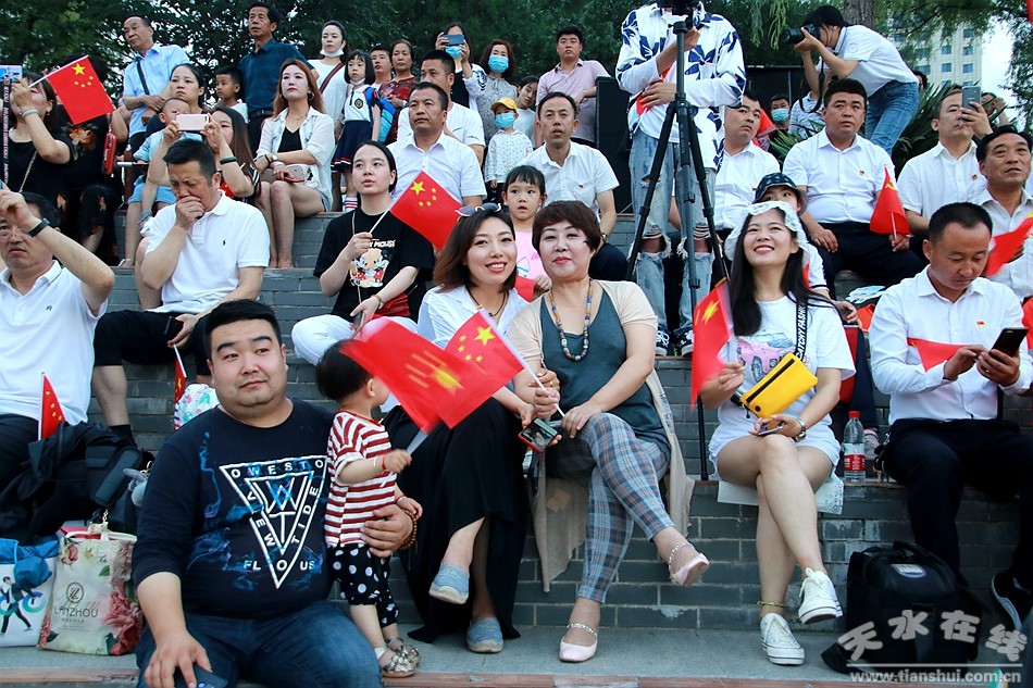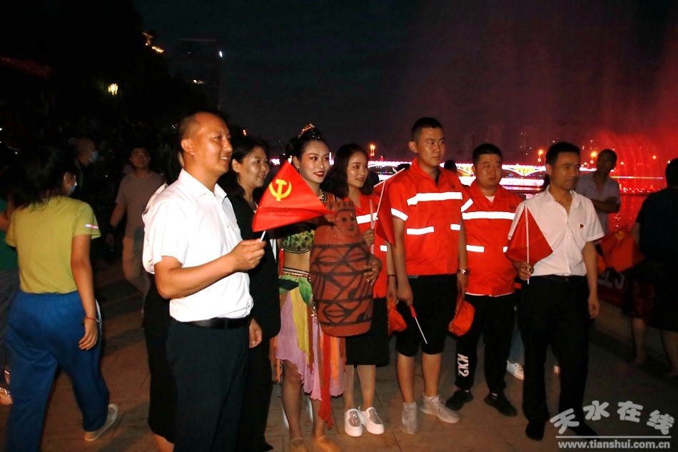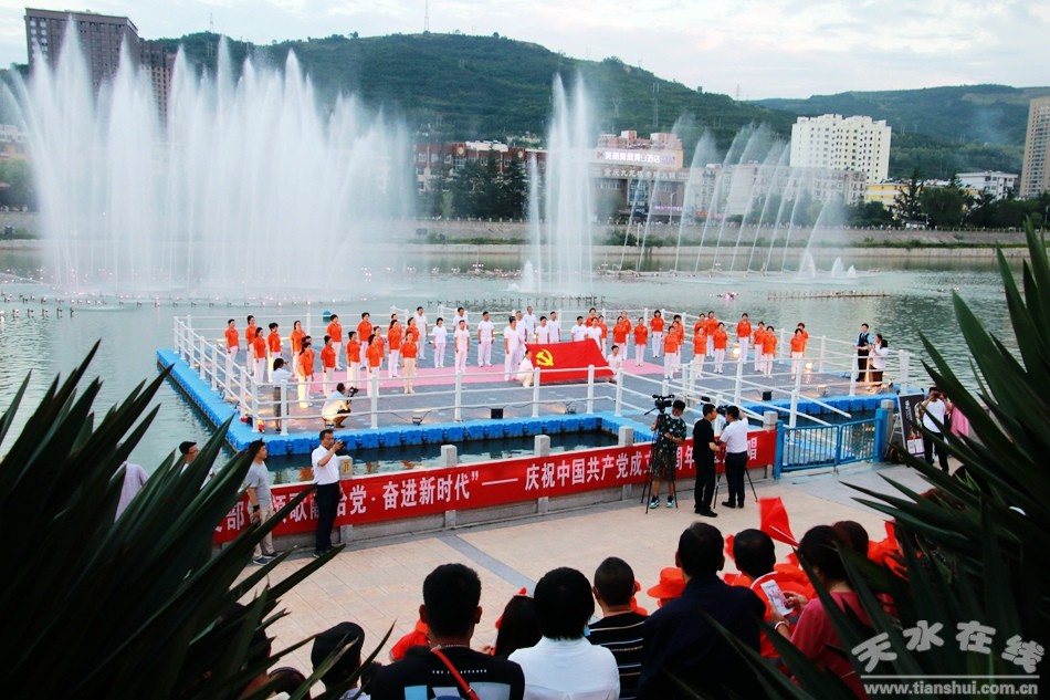 在中國共產(chǎn)黨99周年華誕之際,由天水在線策劃,秦州區(qū)城鄉(xiāng)環(huán)衛(wèi)中心黨委、天水市職工合唱團黨支部、天水在線黨支部聯(lián)合舉行的慶祝建黨99周年《沒有共產(chǎn)黨就沒有新中國》職工大合唱,6月29日晚,在天水湖音樂噴泉濃情上演,上百名黨員和數(shù)千群眾觀看了演出。