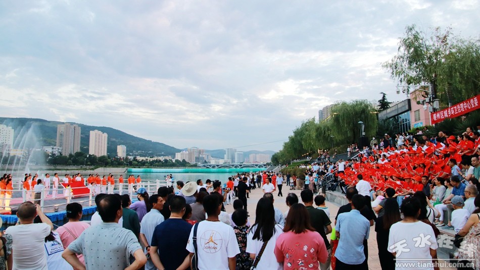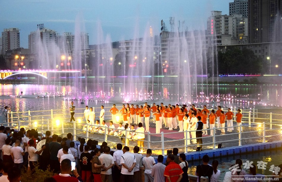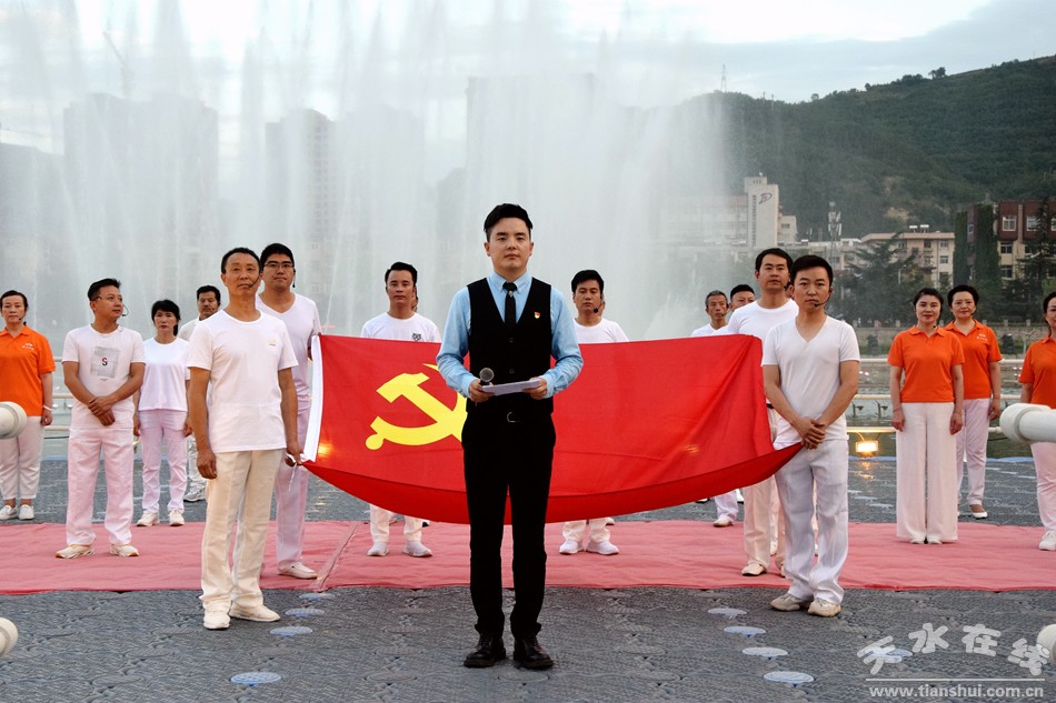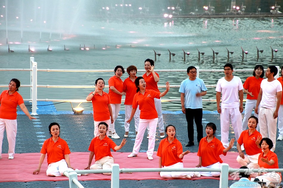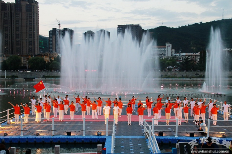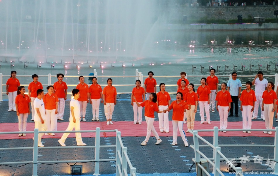 在上百名黨員重溫入黨誓詞之后,天水市職工合唱團先后上演了《沒有共產(chǎn)黨就沒有新中國》、《紅歌大聯(lián)唱》大合唱,《永遠的經(jīng)典》合唱表演和《我和我的祖國》大合唱。最后,由天水湖管理處和天水在線聯(lián)合推出的“大地灣女神+大美天水”音樂噴泉激情上演。