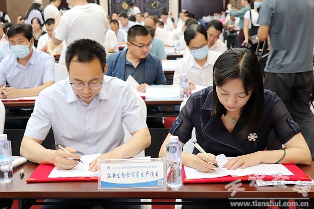 7月3日下午,第二十六屆蘭洽會天水市招商引資項(xiàng)目推介暨簽約儀式在天水賓館會議中心隆重舉行。園區(qū)黨工委書記、管委會主任郭湘帶領(lǐng)園區(qū)有關(guān)部室及簽約企業(yè)負(fù)責(zé)人參加簽約儀式。