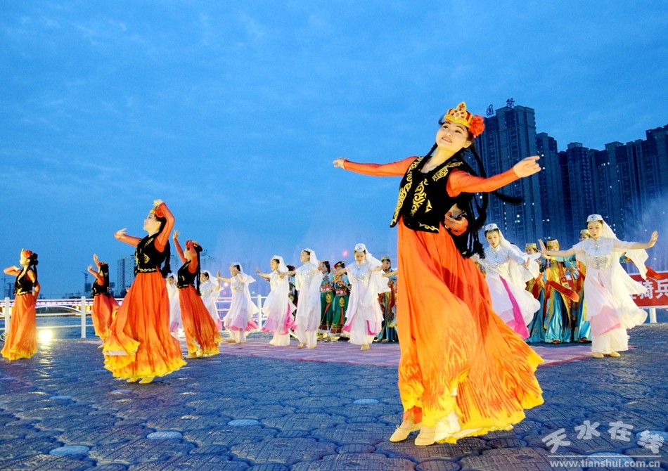 (天水市歌舞團(tuán)“紅色文藝輕騎兵”在天水湖演出)