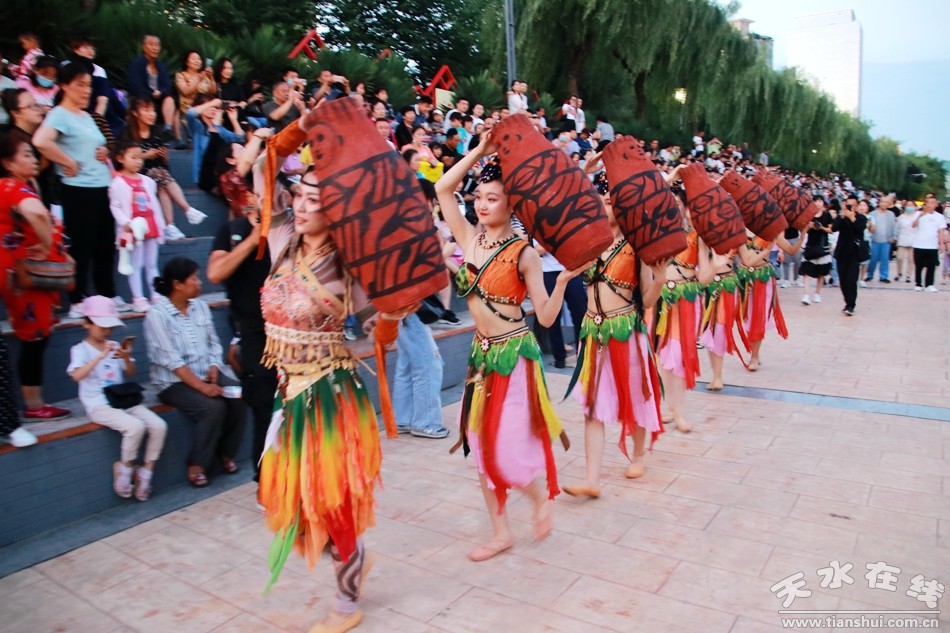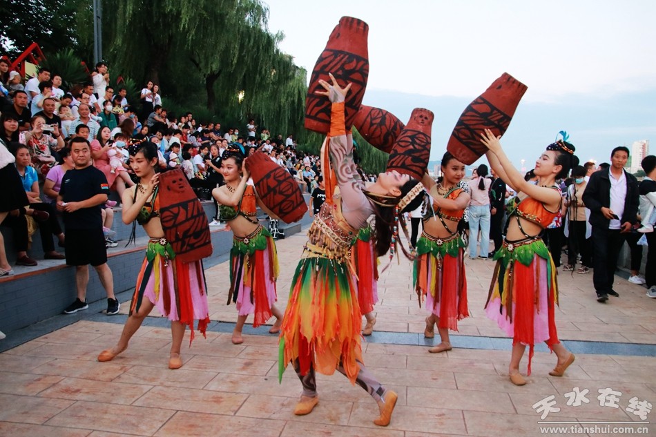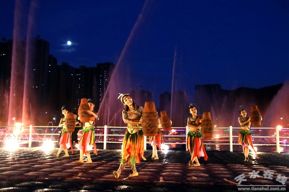 8月1日晚,由天水湖管理處、天水在線和天水藝術學校根據(jù)“大地灣女神”舞蹈和“大美天水”音樂噴泉特效專門設計并聯(lián)合推出的“大美天水+大地灣女神”音樂噴泉第九場演出在天水湖激情上演,這也是群舞版“大美天水+大地灣女神”音樂噴泉首次演出。數(shù)千群眾現(xiàn)場觀看了演出,上萬網友通過天水在線抖音直播間觀看了演出。