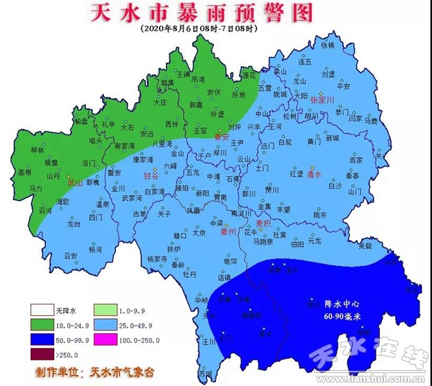 6日白天:中到大雨,秦州區(qū)東南部、麥積區(qū)南部暴雨。