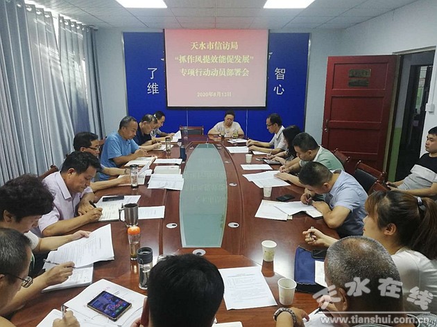 8月13日,天水市信訪局召開 “抓作風(fēng)提效能促發(fā)展”專項(xiàng)行動(dòng)動(dòng)員部署會(huì)議。市委副秘書長、市信訪局局長牟建林主持會(huì)議并作動(dòng)員講話,局領(lǐng)導(dǎo)班子成員、市行政監(jiān)察投訴中心主任、市信訪局機(jī)關(guān)和市行政監(jiān)察投訴中心全體干部職工參加。