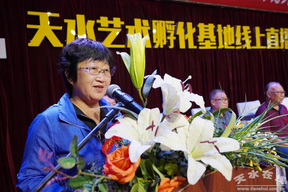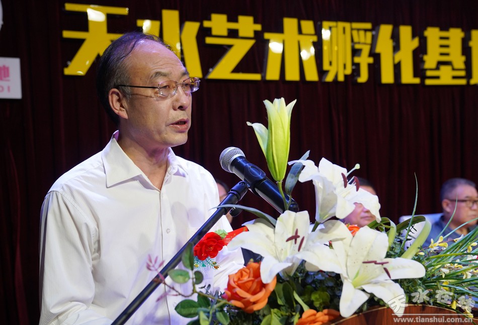 (天水市書畫院院長李靖宣布書法展開幕)