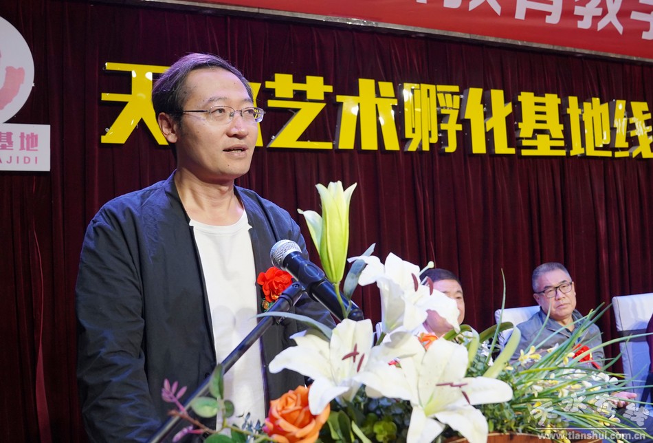 天水市書畫院院長李靖宣布書法展開幕,市書協(xié)副主席彭衛(wèi)致辭,市書協(xié)副主席、書法教育家、天水蘭亭書法教育創(chuàng)始人張貴榮介紹了蘭亭書法教育培訓(xùn)情況。