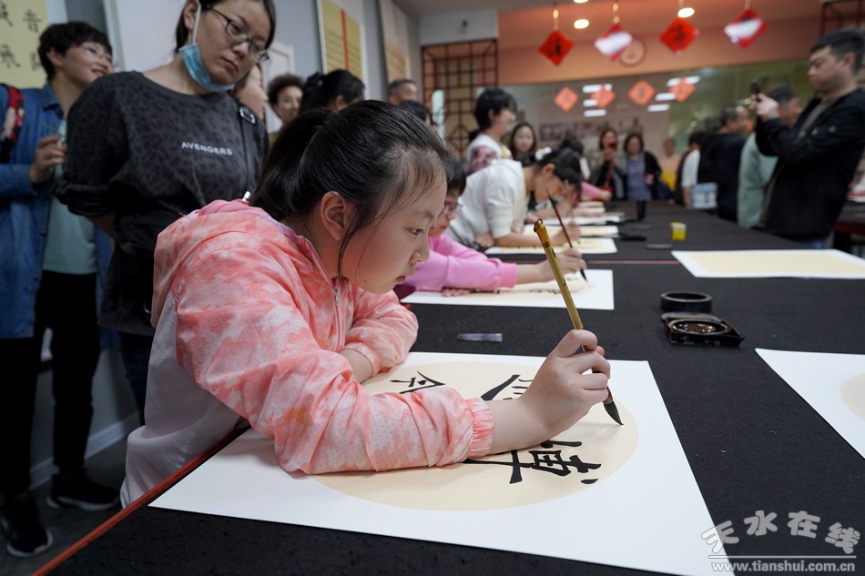 市政協(xié)原副主席、省書協(xié)副主席,著名書法家王鳳保,天水市民俗專家、書法家李子偉,天水市科技局原局長楊秀峰,市書協(xié)副主席彭衛(wèi),天水市書畫院院長、美術(shù)館館長李靖和天水市書畫界同仁、家長、學(xué)生等100多人參加了開幕式。