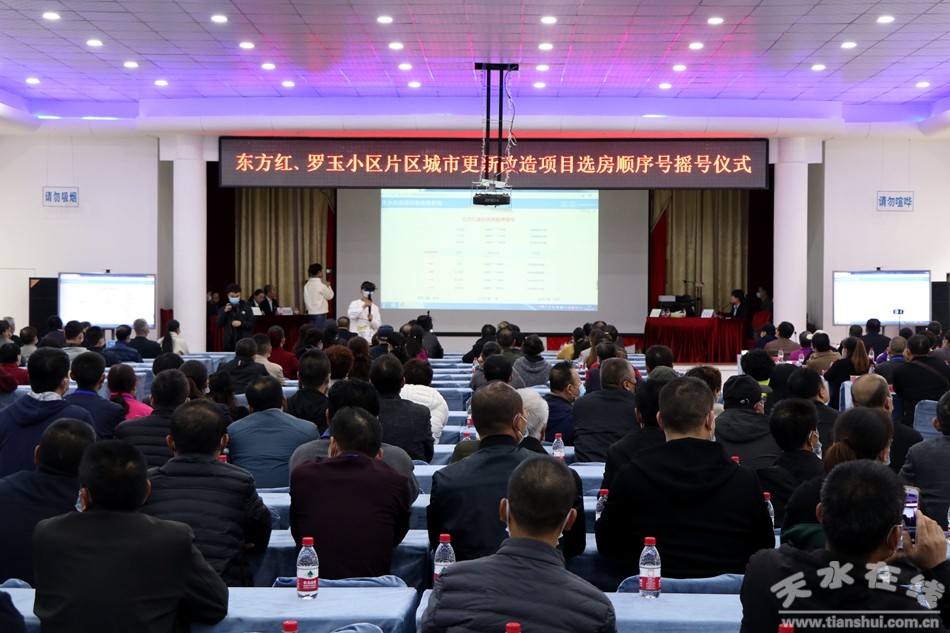 據(jù)悉,為了確保選房順序號搖號活動的公開、公平、公正,天水市城市更新指揮部辦公室特邀請?zhí)焖泄C處公證員對本次活動進行全程監(jiān)督。參加今天搖號并在直播現(xiàn)場就坐的有:各片區(qū)各樓棟群眾代表、市公證處公證員、搖號系統(tǒng)操作技術(shù)員、天水在線直播工作人員、市城市更新指揮部部分工作隊員,共240多人。