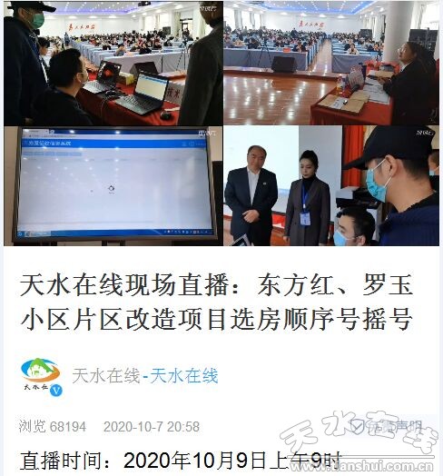 當(dāng)天,按照天水市城市更新指揮部辦公室的安排,天水在線通過新華社現(xiàn)場云,以3個固定機位和1個移動機位4機位模式,對搖號全程進行了現(xiàn)場直播,在三個小時的直播過程中,有6萬多人觀看了現(xiàn)場直播。